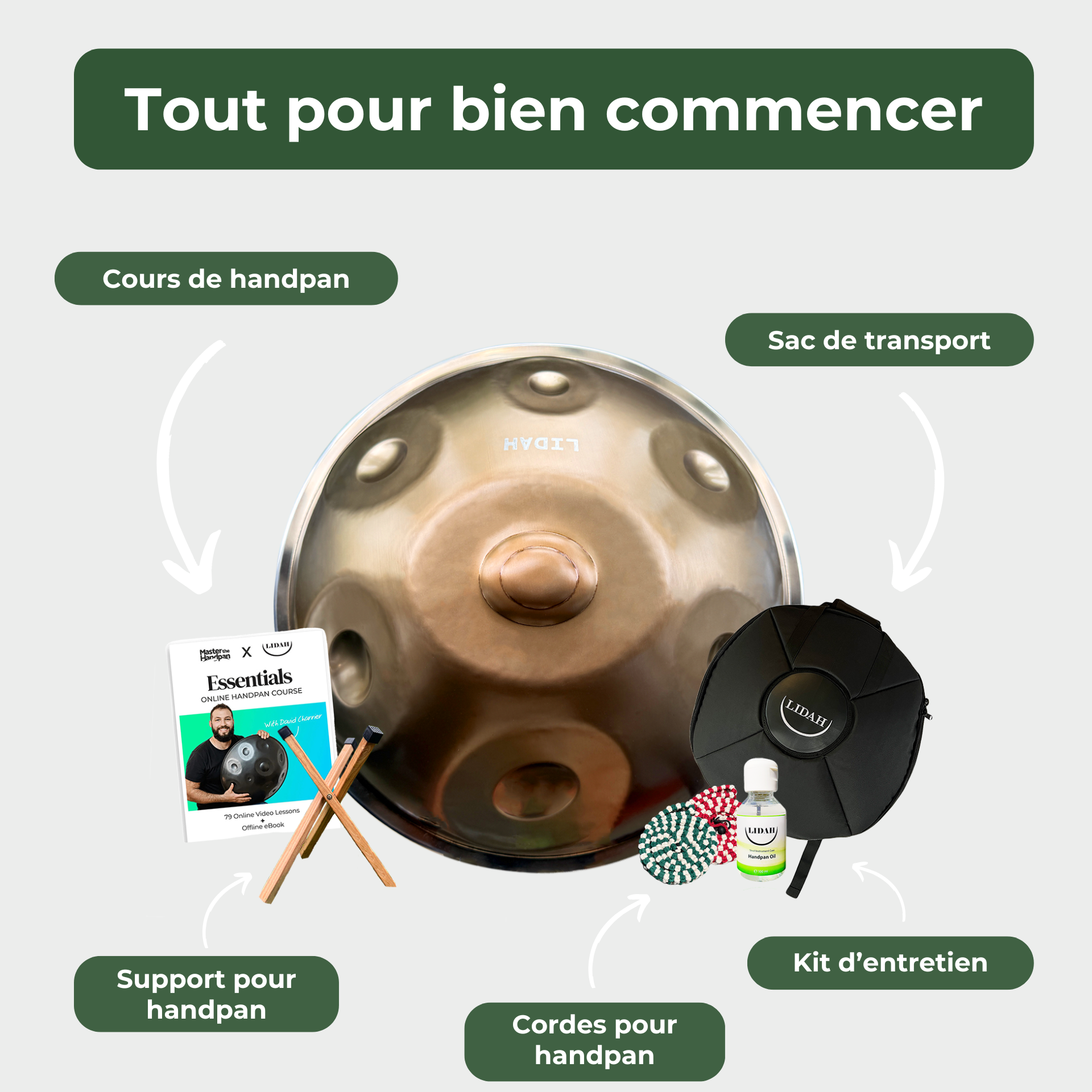 Lorsque vous commandez un handpan LIDAH, vous ne recevez pas seulement un instrument, vous recevez un package complet pour commencer votre voyage immédiatement :