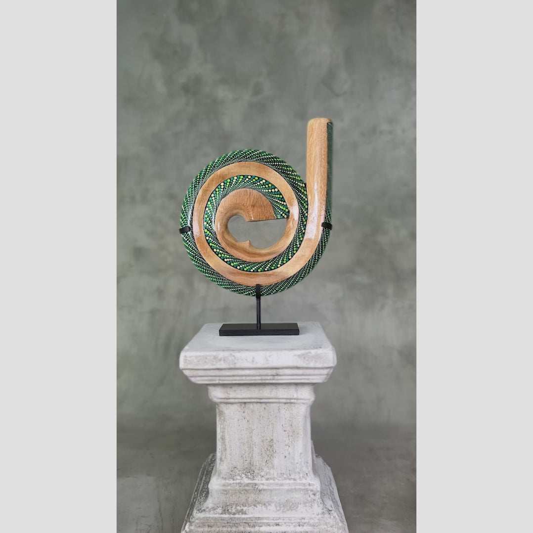 - Spiral Didge → Iets groter, met een diepere, resonante klank. Niet alleen een instrument, maar ook een kunstwerk met zijn elegante vorm en afwerking.